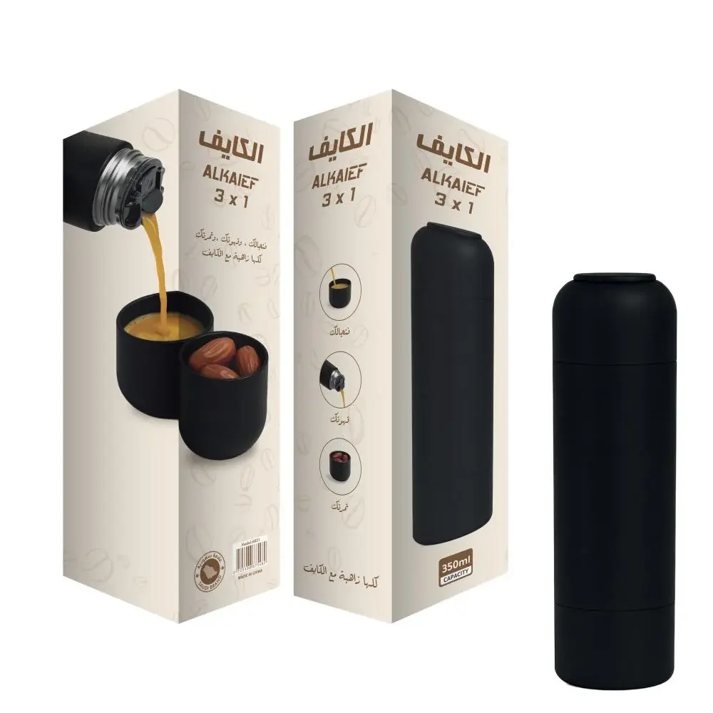 هذا المنتج هو ترمس قهوة ذكي من ماركة "الكايف" (Alkaief) بتصميم 3 في 1.