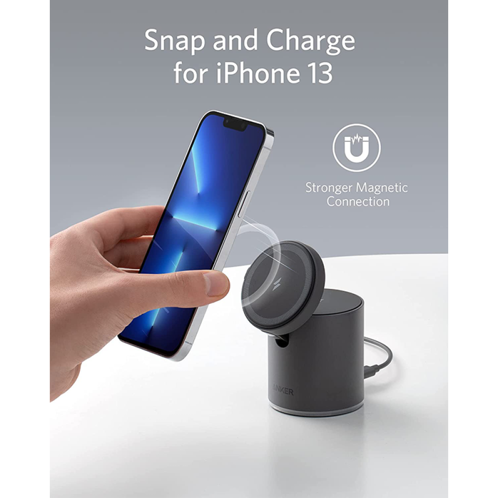 شاحن مغناطيسي لاسلكي انكر ماج جو مع منفذ PD بقوة 20 واط - اسود