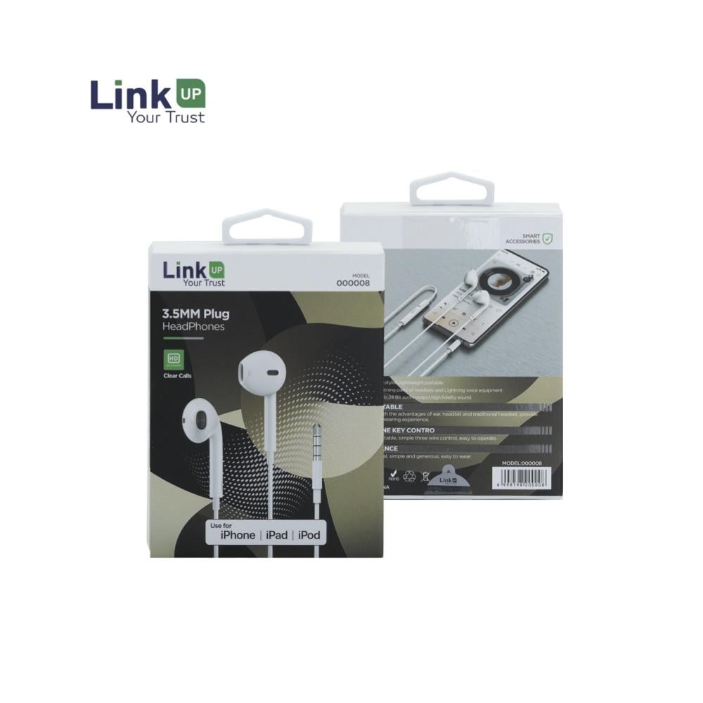 احصل على تجربة صوتية غامرة مع سماعات LinkUP 3.5MM المصممة لتوفير راحة مثالية وجودة صوت نقية تناسب مكالماتك وموسيقاك.