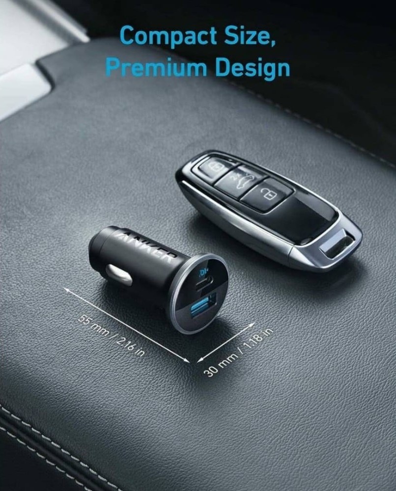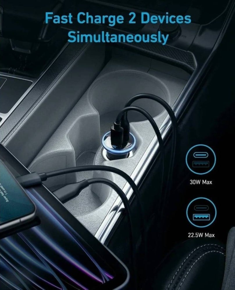 شاحن سيارة انكر بمنفذ تايب سي و منفذ يو اس بي بقوة 52.5 واط