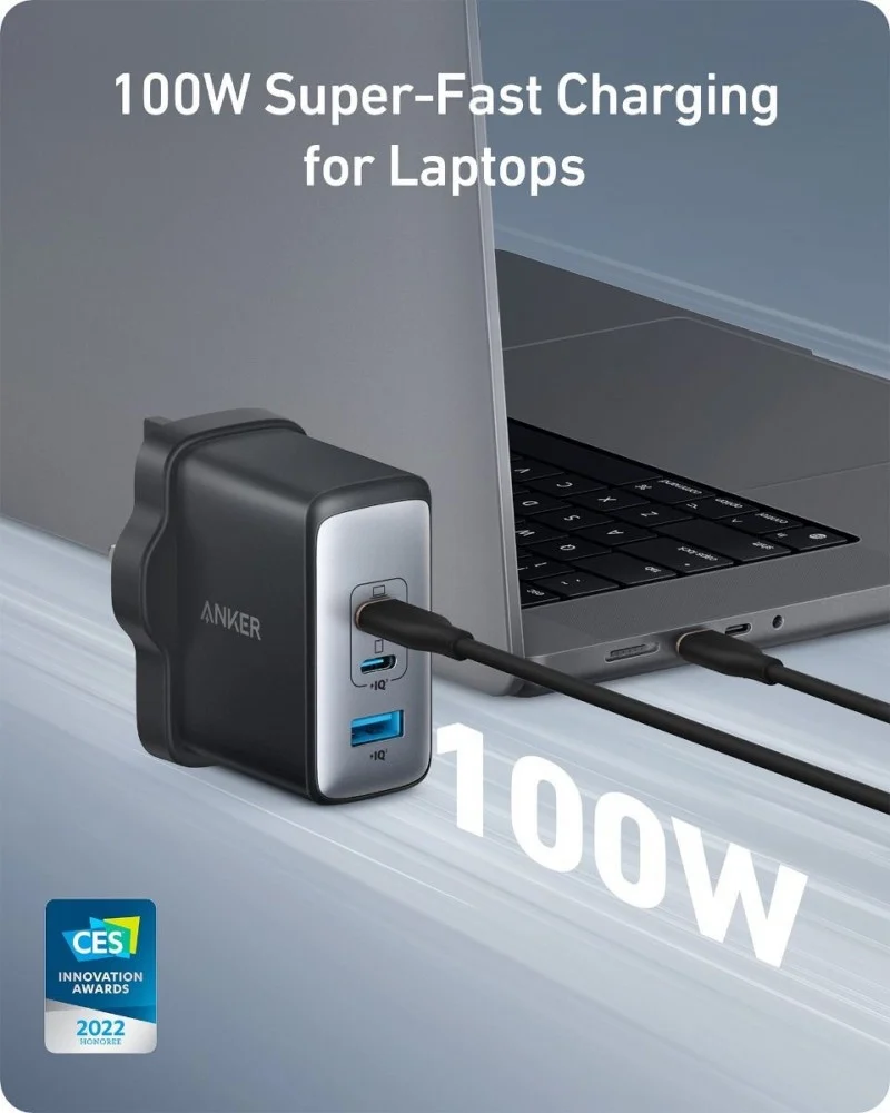 شاحن جداري انكر بقوة 100 واط بمنفذين تايب