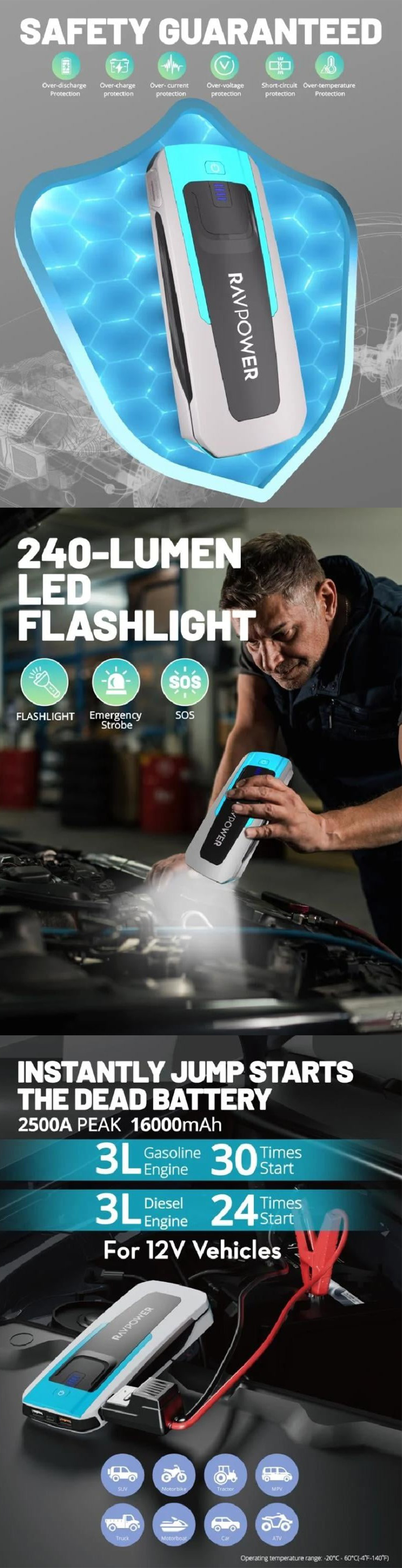 راف باور مشغل سيارة وبطارية بسعة 16000 ملي امبير بقوة 59.2 واط