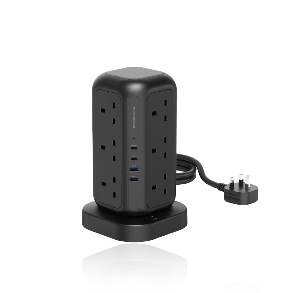 يستخدم Powerology 12 Tower Hub لمدة 3250 دقيقة. لن تتمكن من شحن جهازك مطلقًا بمساعدة هذا المصباح المزدوج بفضل المقابس المتغيرة قم بتوصيل USB-C إلى USB-A. 12 ساعة من وقت الطهي يحتوي منافذ USB-C وUSB-A و12 منفذًا. كما أن الجزء العلوي من البرج شاحن لاسلكي لشحن جهازك عند توصيل التيار الكهربائي لمدة 15 دقيقة. 1700 جول لحية ماية أجهزتك من الجهد الزائد أو الزائد.