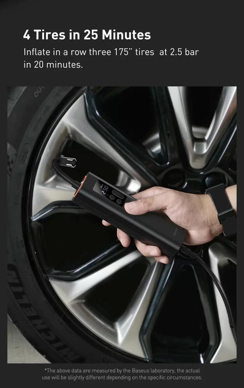 يعتبر منفاخ كفرات Baseus أحد الأدوات المهمة في السيارة حيث يساعدك لضخ الهواء إلى إطارات السيارة والحفاظ على ضغط هواء ملائم، محمول مما يسهل حمله في السيارة واستخدامه في أي وقت وأي مكان.