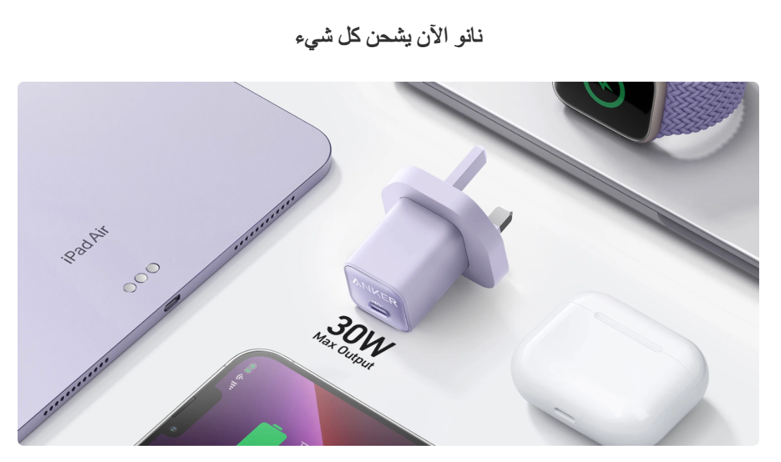 شاحن جداري انكر نانو بقوة 30 واط بمنفذ USB-C